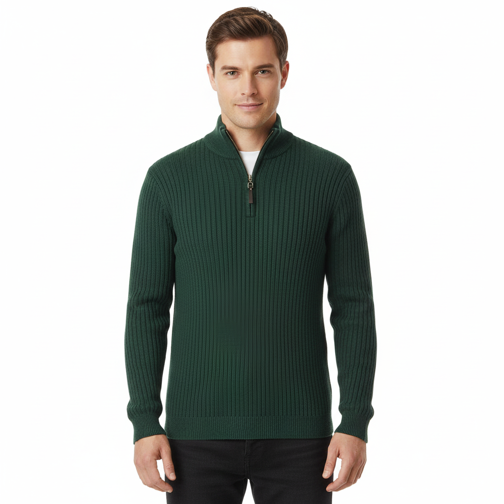 Pánský svetr Arjay s polovičním zipem nabízí dokonalou rovnováhu mezi pohodlím a elegancí. Je vybaven stojáčkem s polovičním zipem a žebrovanými lemy na rukávech, díky čemuž se snadno přizpůsobí různým stylům, od ležérního po formálnější.