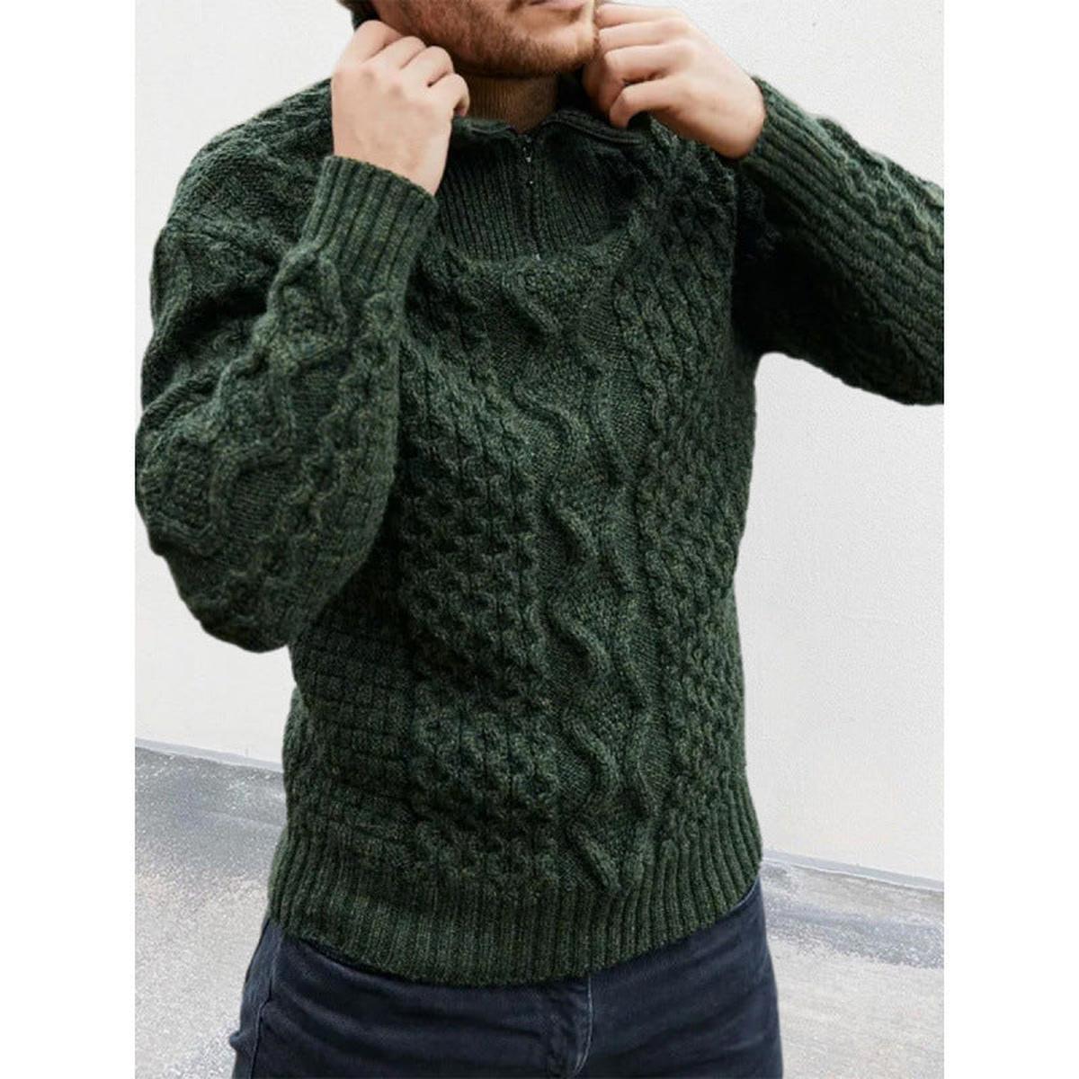 McArthur Pánský svetr s copánkovým vzorem – svetr s vysokým límcem na zip a elegantním přiléhavým střihem