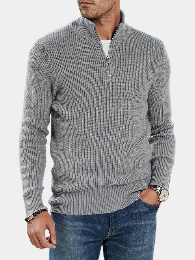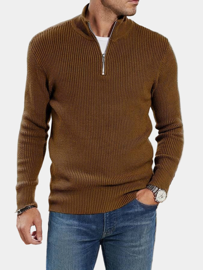 Orly Pánský Žebrovaný Svetr – Texturovaný Svetr s Polovičním Zipem, Nastavitelným Límcem a Moderním Komfortem