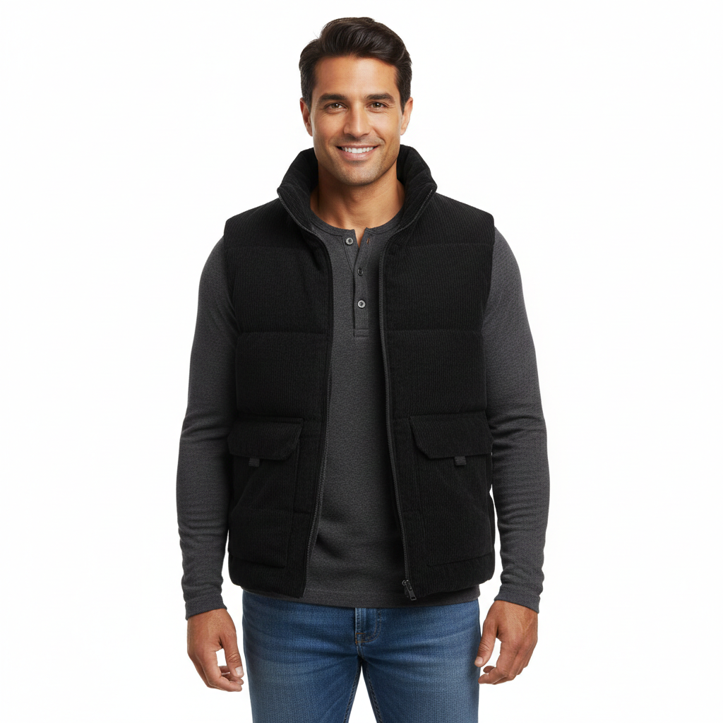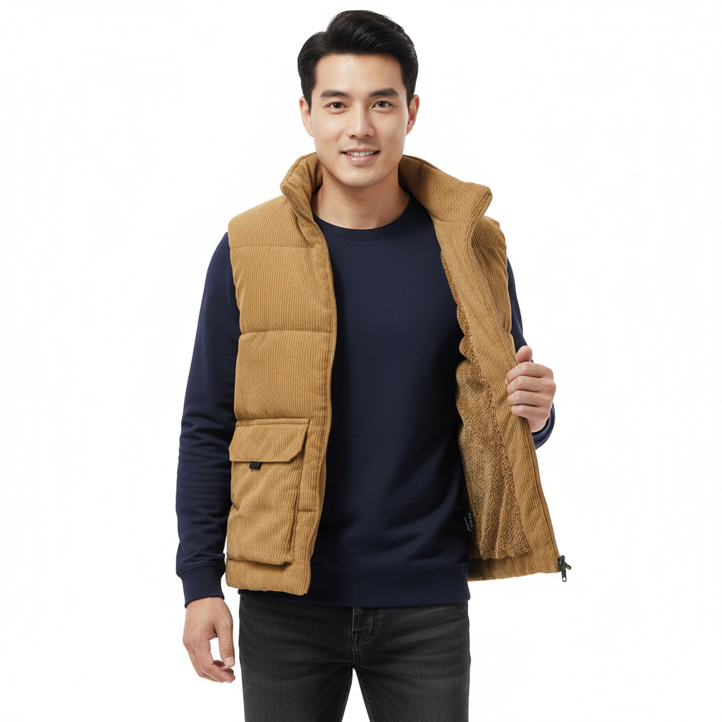 Pánská vesta Ryan z manšestru kombinuje klasický styl a moderní funkčnost v univerzálním kousku, ideálním pro chladnější období. Její manšestrová látka přináší texturu a charakter, zatímco prošívaný vnitřek poskytuje pohodlné teplo bez omezení pohybu. Vyrobena z odolných materiálů, tato vesta zaručuje dlouhou životnost a zároveň je příjemná na nošení každý den. Stojatý límec účinně chrání před chladem a posiluje městský vzhled modelu. Prostorné přední kapsy přidávají praktický rozměr, ideální pro každodenní použití. Snadno se kombinuje s svetrem, košilí nebo mikinou, vesta Ryan se přirozeně začleňuje do moderní pánské garderoby, mezi nadčasovou elegancí a funkčním pohodlím.