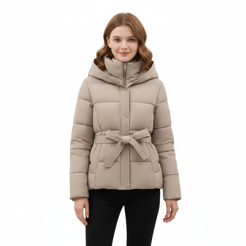 Leyna Dunjakke til kvinder – Frakke med bælte, varm hætte og elegant snit