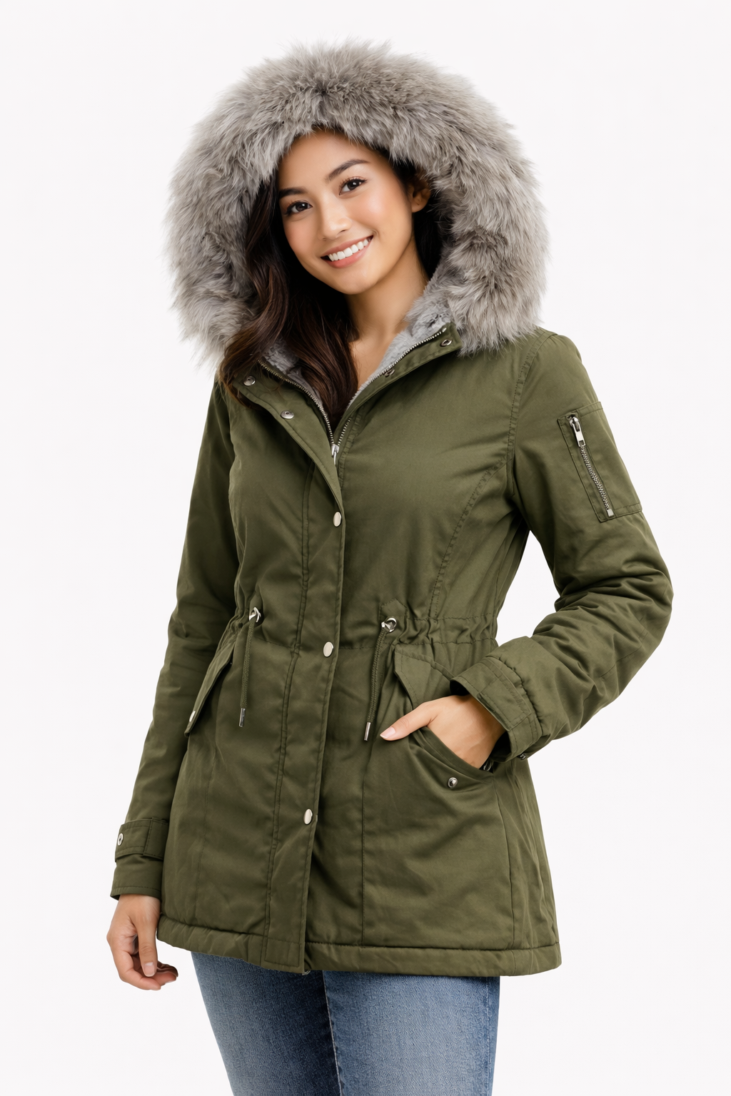 Angelica Damen-Winterparka – Mittellanger Schnitt, Kapuze mit Kunstpelz & Stadtstil