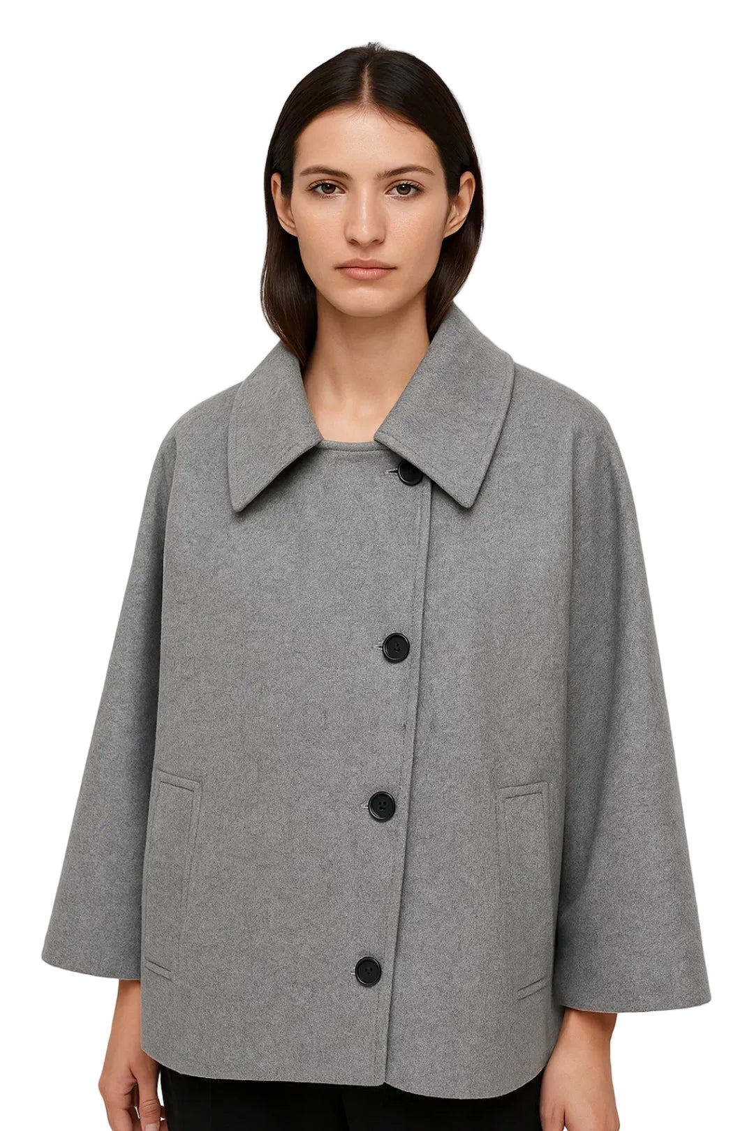 Bianca Damen Kurzmantel – Fließender Trapezschnitt, Weiter Kragen & Eleganter Knopfverschluss