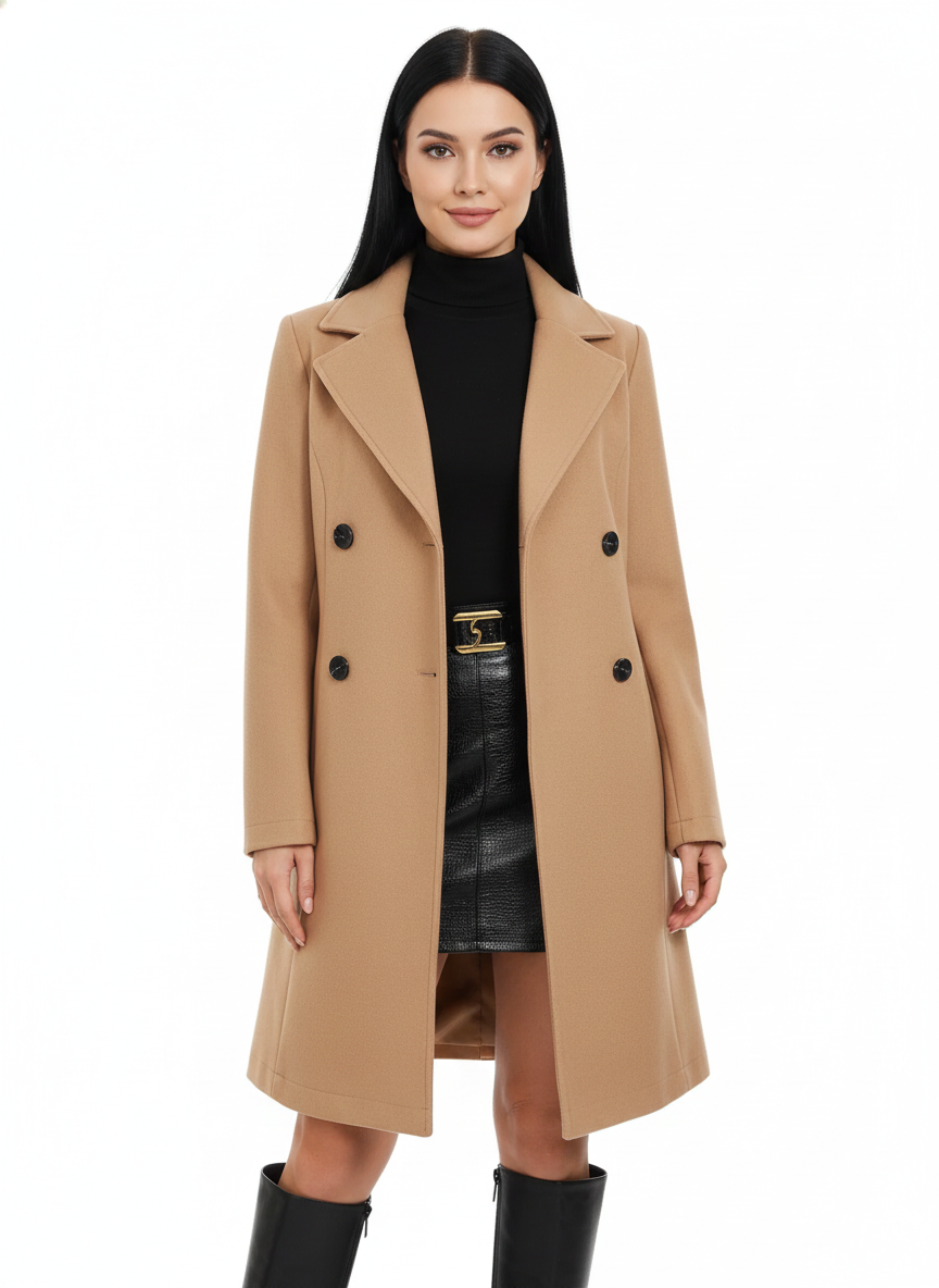 Sonia Mantel Lang Damen – Wollmantel Mit Gürtel Zweireihig Elegant & Warm