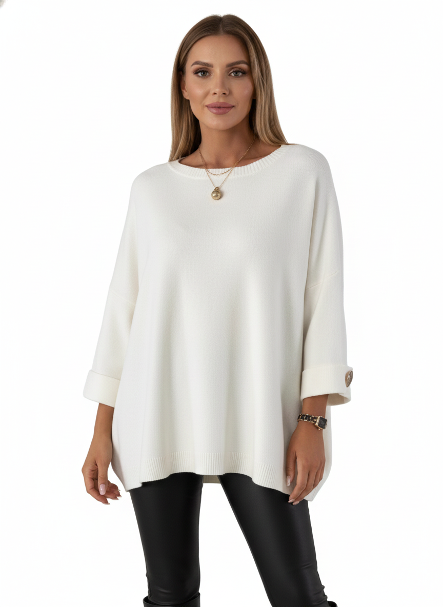 Claudy Pull Oversize Mujer – Tejido Suave con Botones Dorados y Corte Elegante