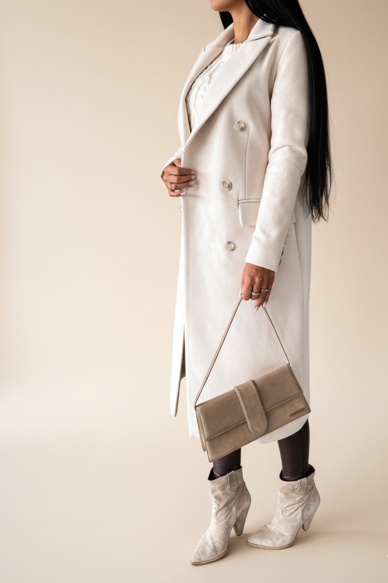 Ludy Abrigo Largo de Lana para Mujer – Abrigo Elegante de Doble Botonadura Corte Recto