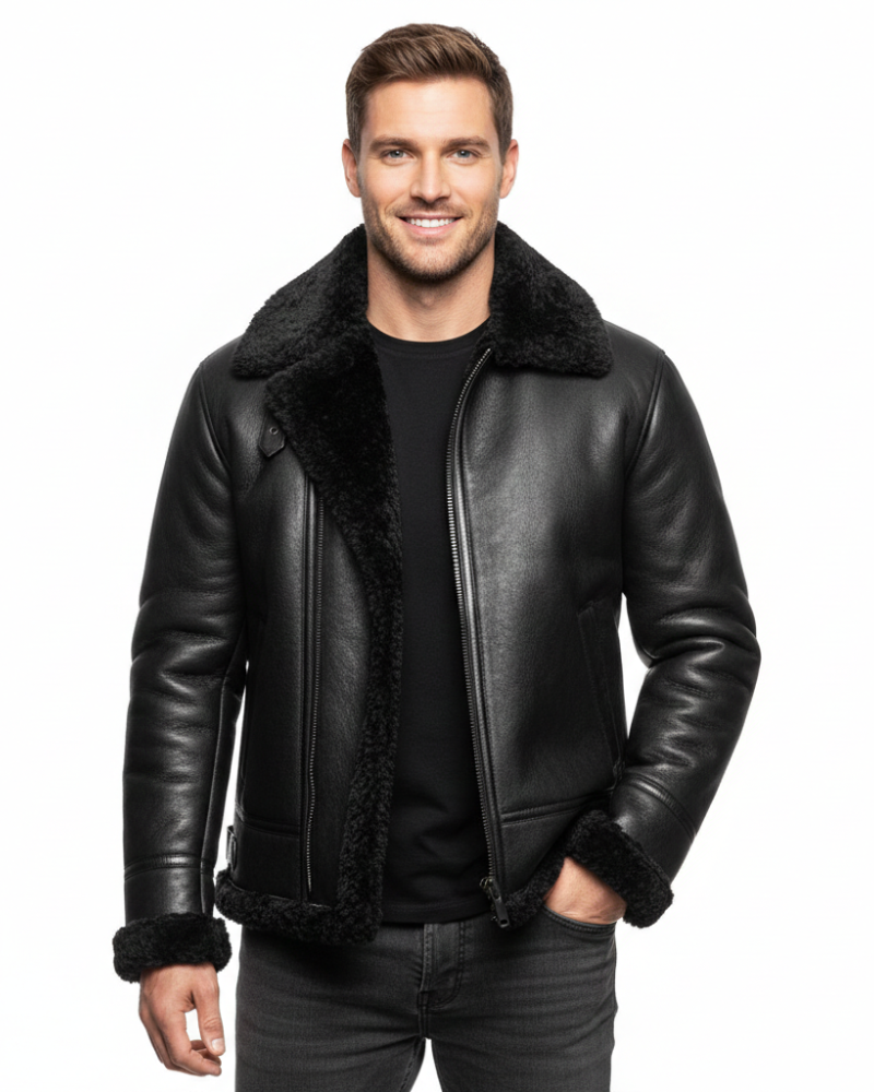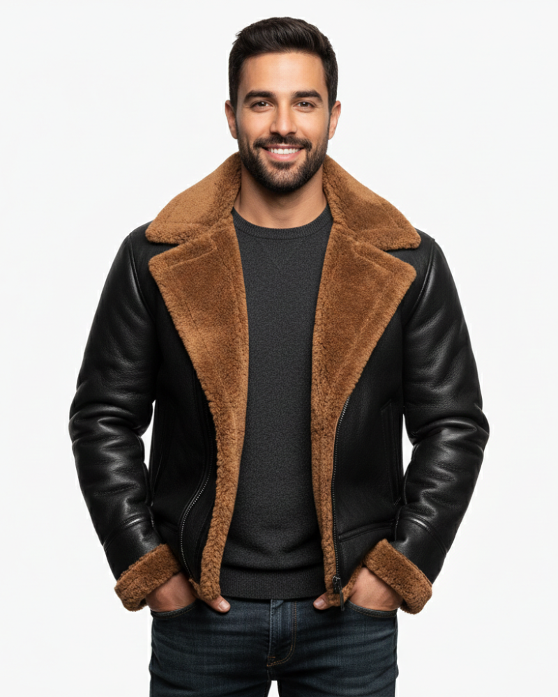Bastian Giubbotto da Aviazione Uomo – Stile Retrò, Fodera Calda e Pelle Elegante Invernale