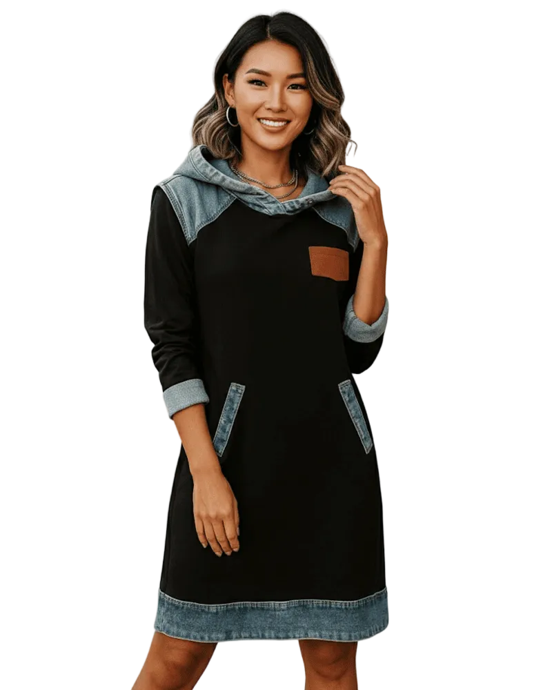 - Stile felpa rivisitato : Aspetto urbano moderno con dettagli in tessuto jeans
