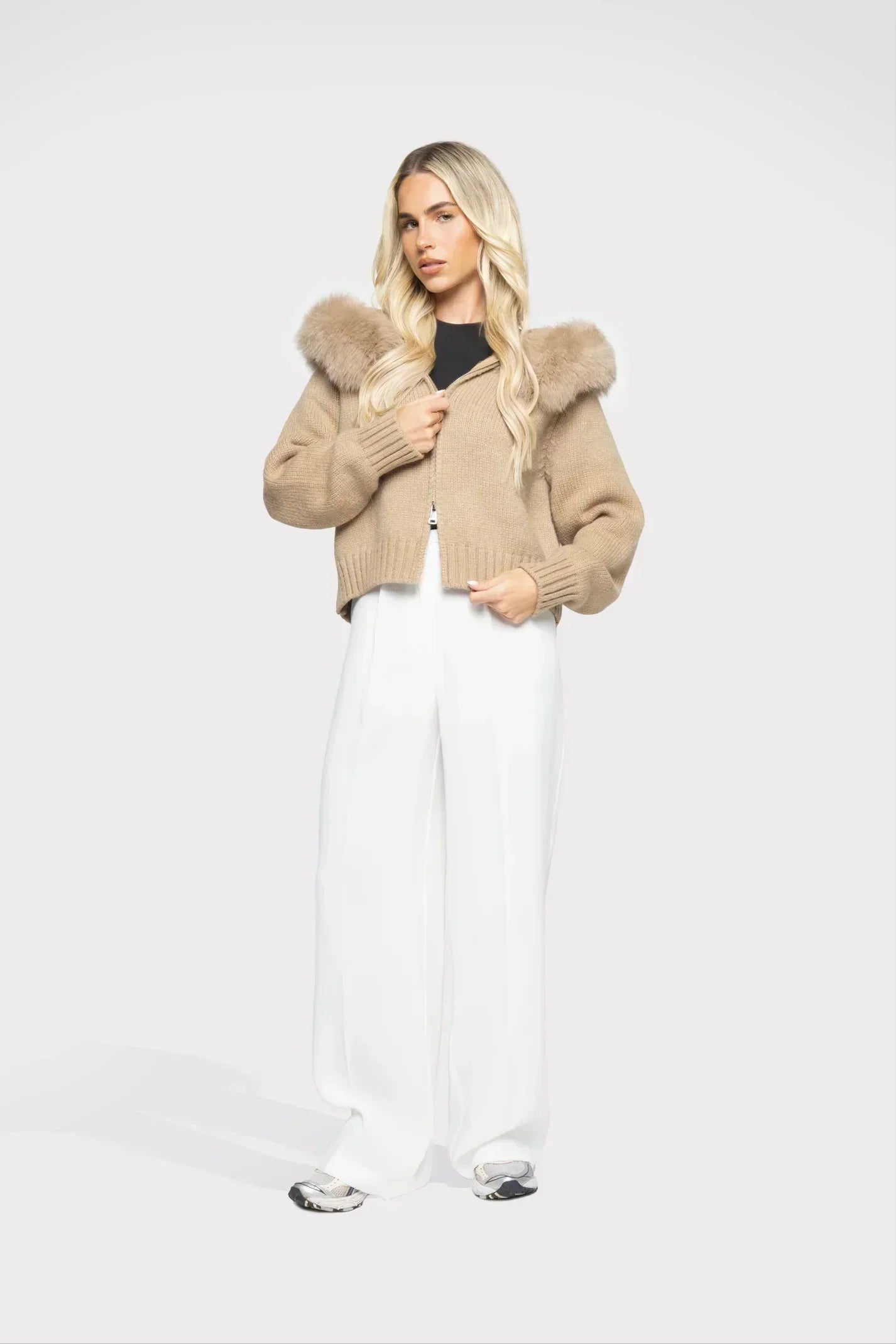 Janelle Kurtka Damska – Elegancka Kurtka Wełniana z Kapturem Wyściełanym Futrem