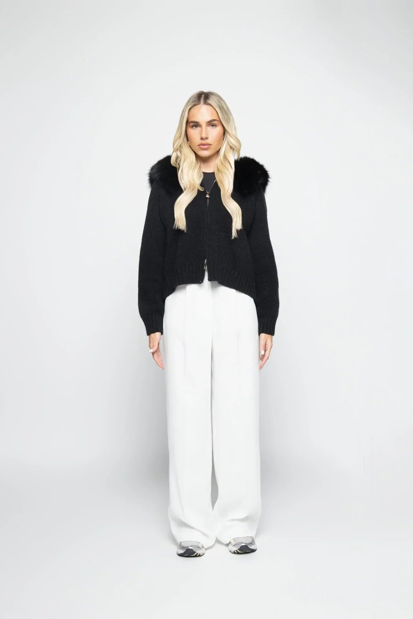 - Design : Damska kurtka z kapturem wykończonym delikatnym futrem