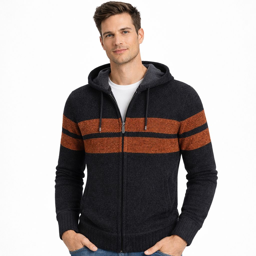 Męski kardigan Nasir z kapturem na zamek – grube dzianie, ocieplina i swobodny styl