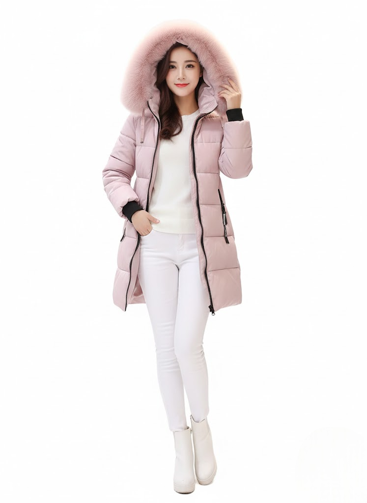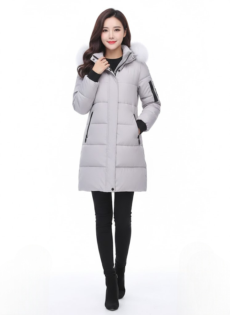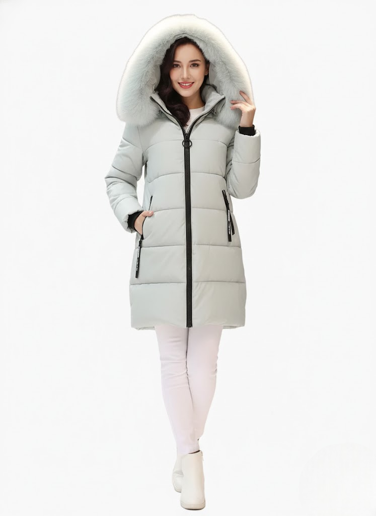 - Capuche avec fausse fourrure : Look raffiné et confort supplémentaire