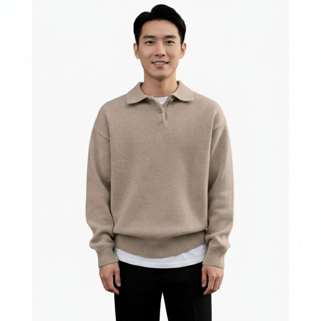 Lorenzo Polo Homme en Laine – Polo Boutonné Élégant, Chaud & Respirant pour Look Moderne