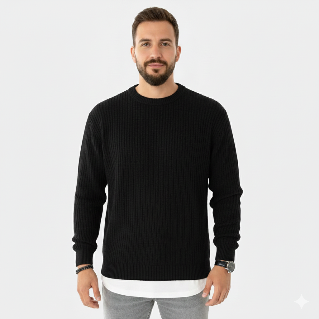 Montaro Pull Homme Col Rond Côtelé – Tricot Classique Élégant et Polyvalent