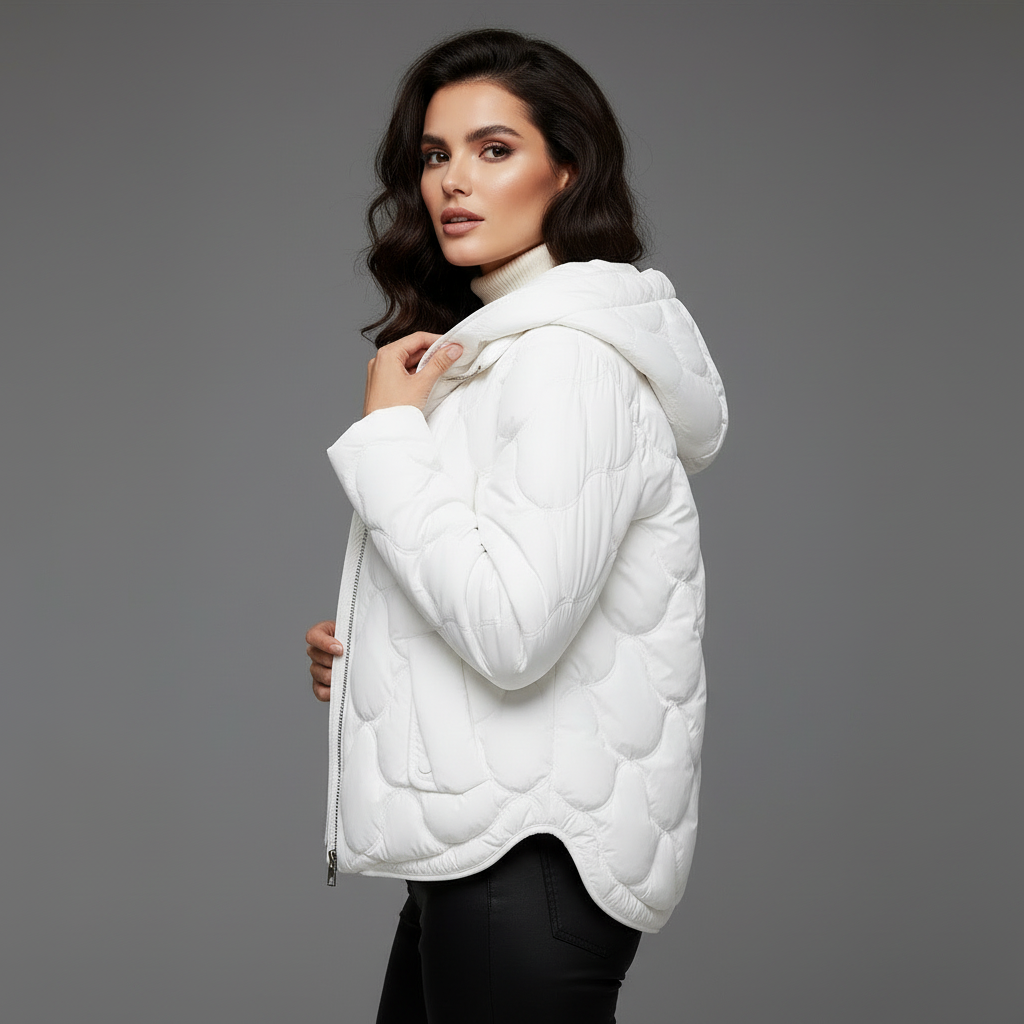 Oline Doudoune Courte Femme – Veste Matelassée Élégante avec Capuche & Fermeture Zippée
