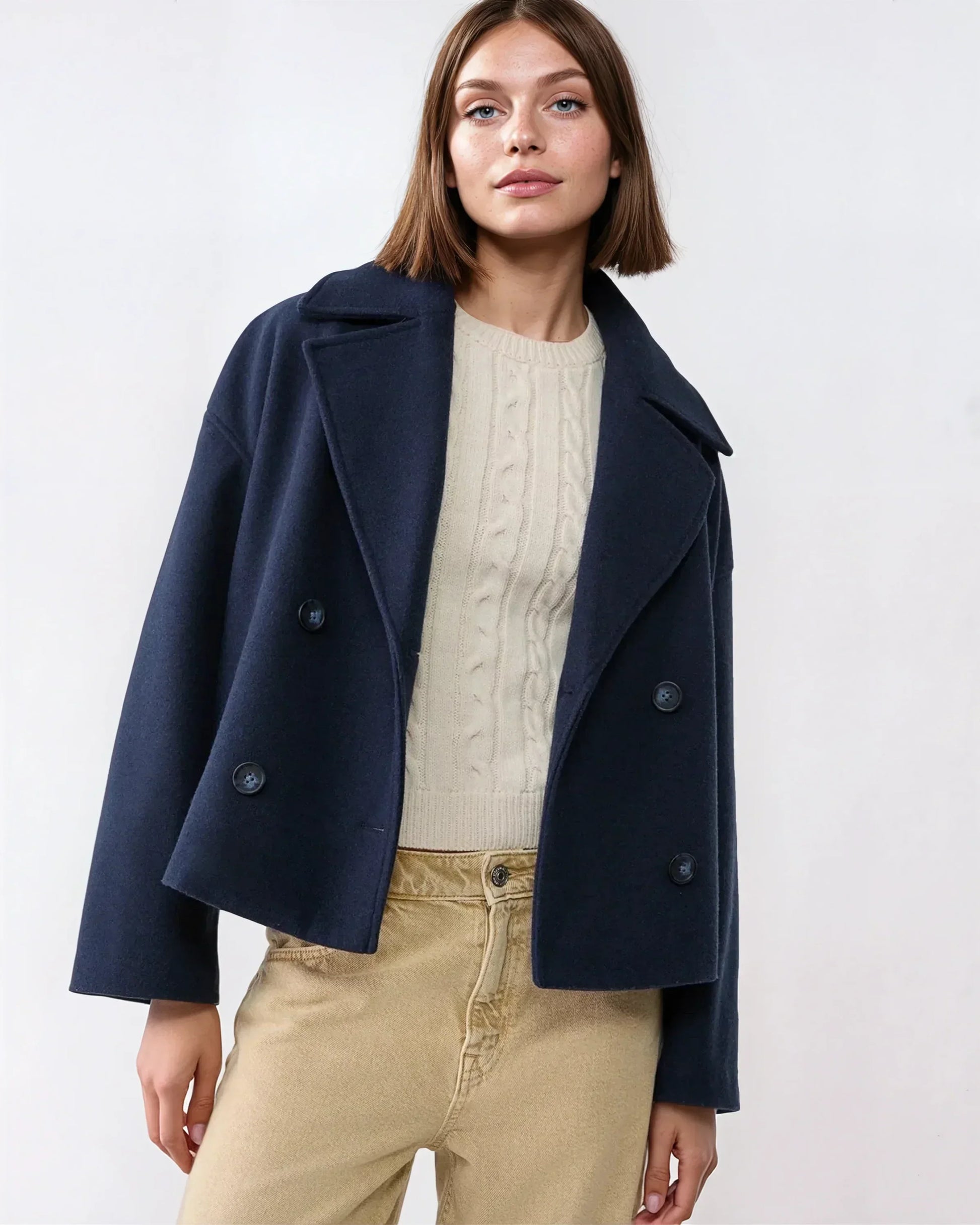 Vanessa Veste Femme – Veste Courte Croisée en Laine Élégante & Chaude pour l’Hiver