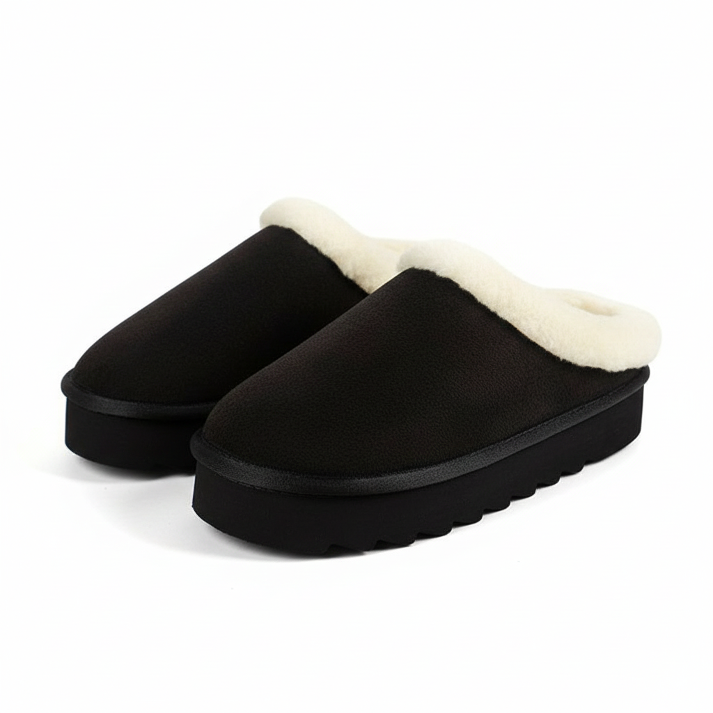 Căptușeala din blană artificială moale oferă o senzație plăcută și menține picioarele bine încălzite, chiar și în cele mai răcoroase zile. Talpa exterioară din cauciuc asigură o stabilitate bună și o aderență fiabilă pe diferite tipuri de suprafețe. Datorită designului slip-on practic, acești papuci se încălță ușor și devin rapid indispensabili în rutina ta zilnică.